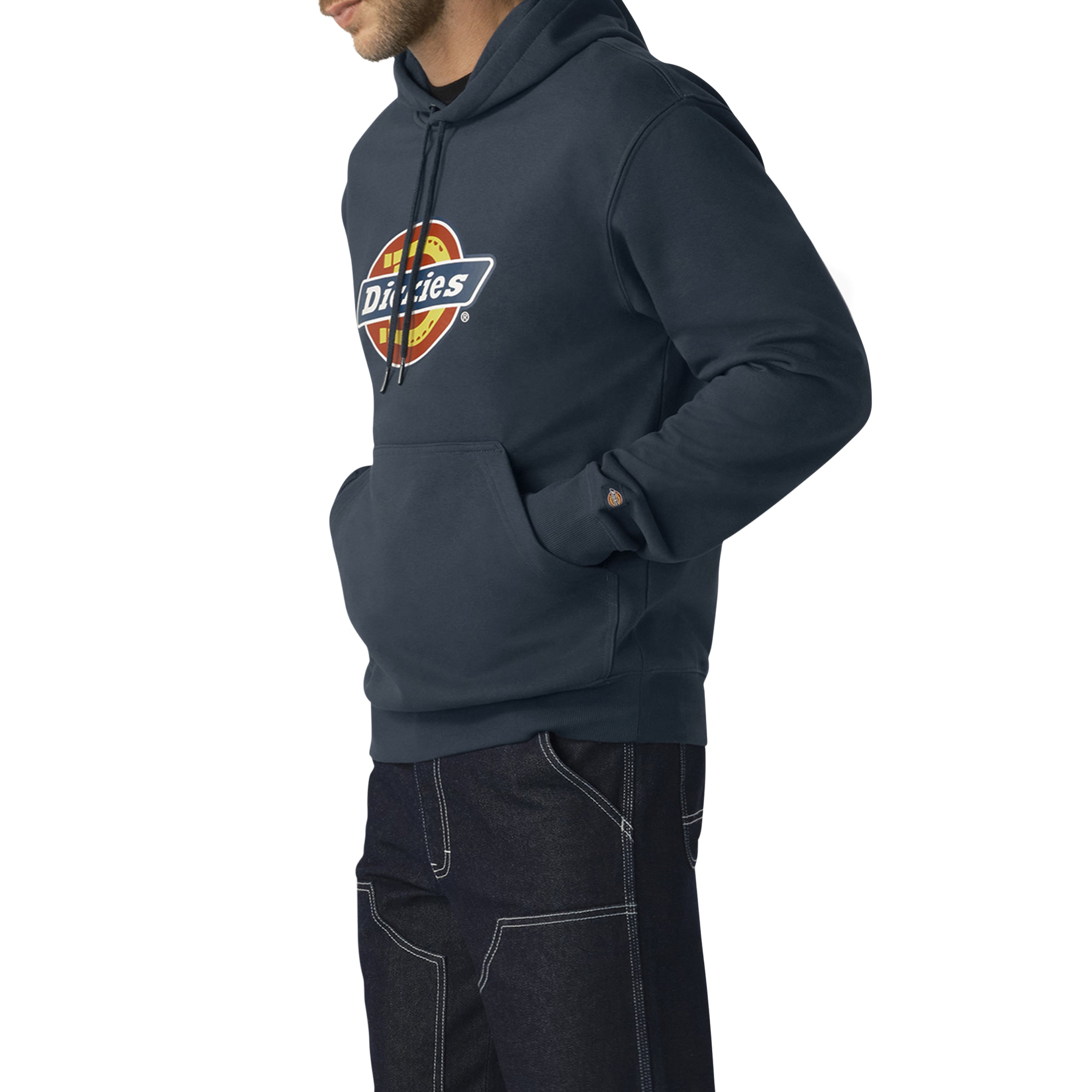 Our Men’s Water Repellent Logo Hoodie is a soft. comfortable fleece. Yet it has a Durable Water Repellent (DWR) finish. so you can work in wet conditions. The three-piece hood and rib-knit waist and cuffs can also help you keep the weather at bay while you perform in ultimate comfort. Keep your work gear close at hand thanks to the kangaroo pocket. Or use it to warm your hands. This hoodie is great for layering. with the Dickies traditional tri-color logo graphic adding style. This Men’s Water Repellent Logo Hoodie ensures you get the job done while remaining comfortable.